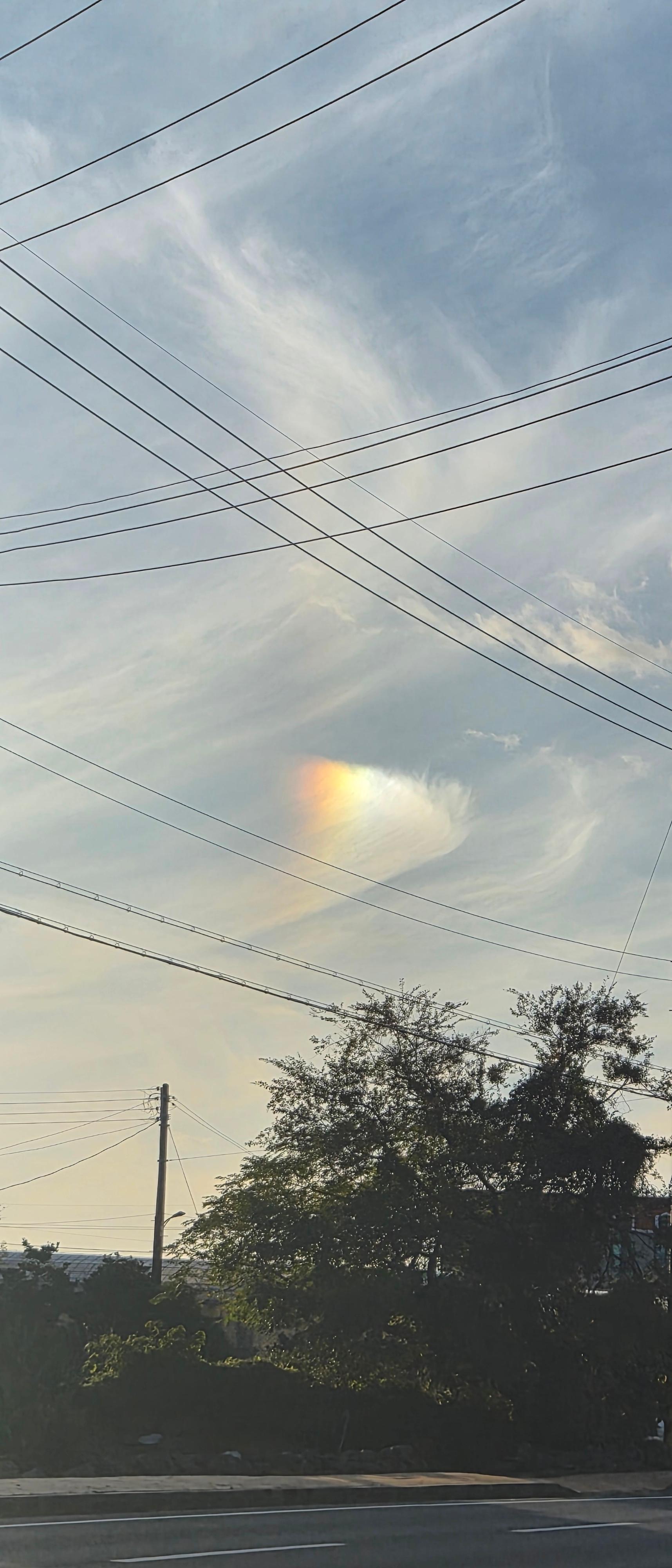 이 현상은 ‘부분 무지개’로 불리지만 정확히는 무지개가 아니라 광학 현상 중 하나인 환일(Parhelion) 또는 태양주변부 분광현상에 가깝다.